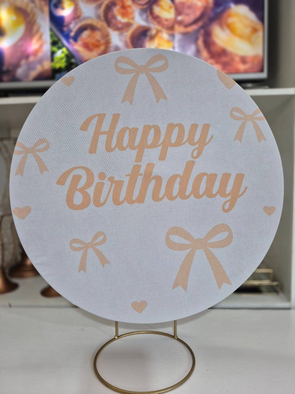 Mini capa painel redondo 50x50 happy birthday Laços Nu