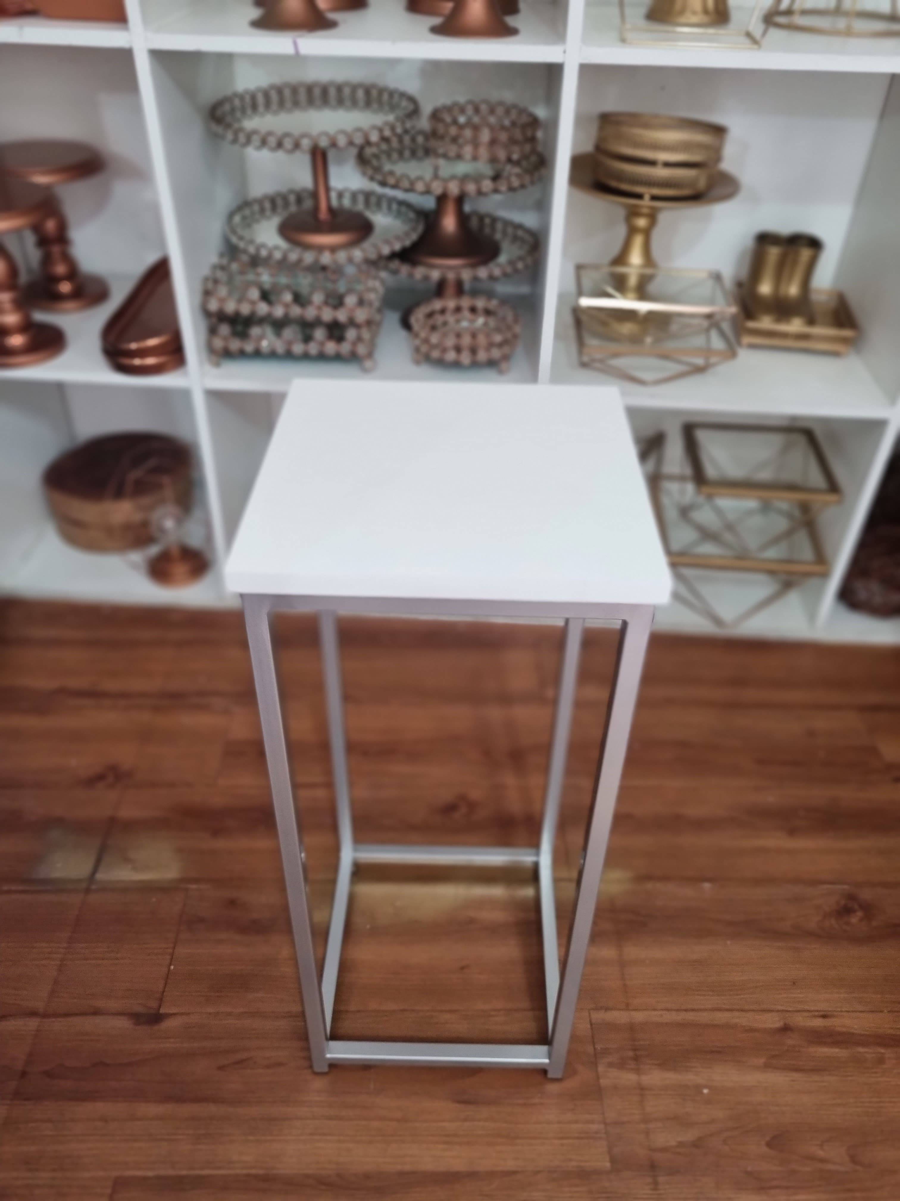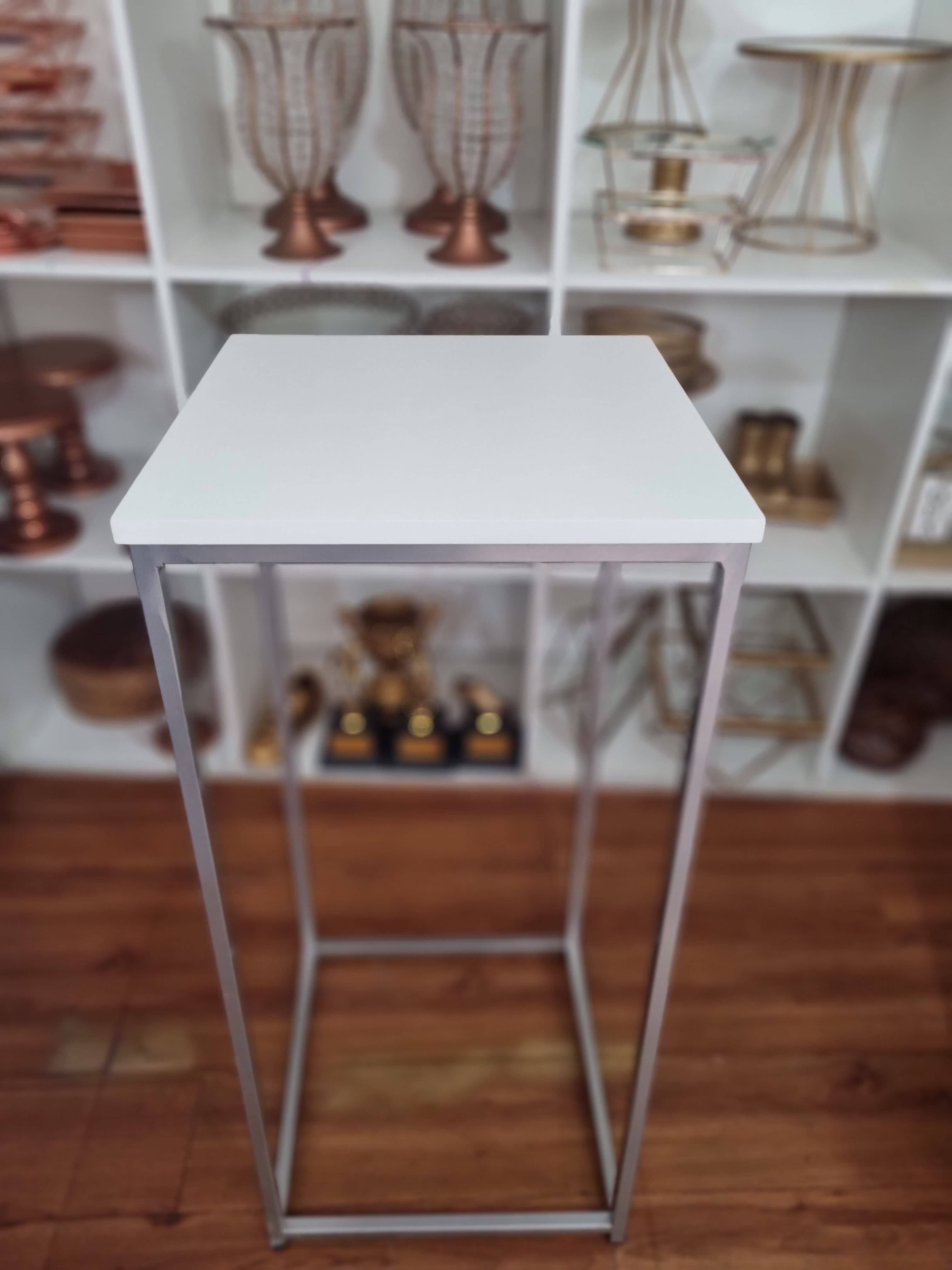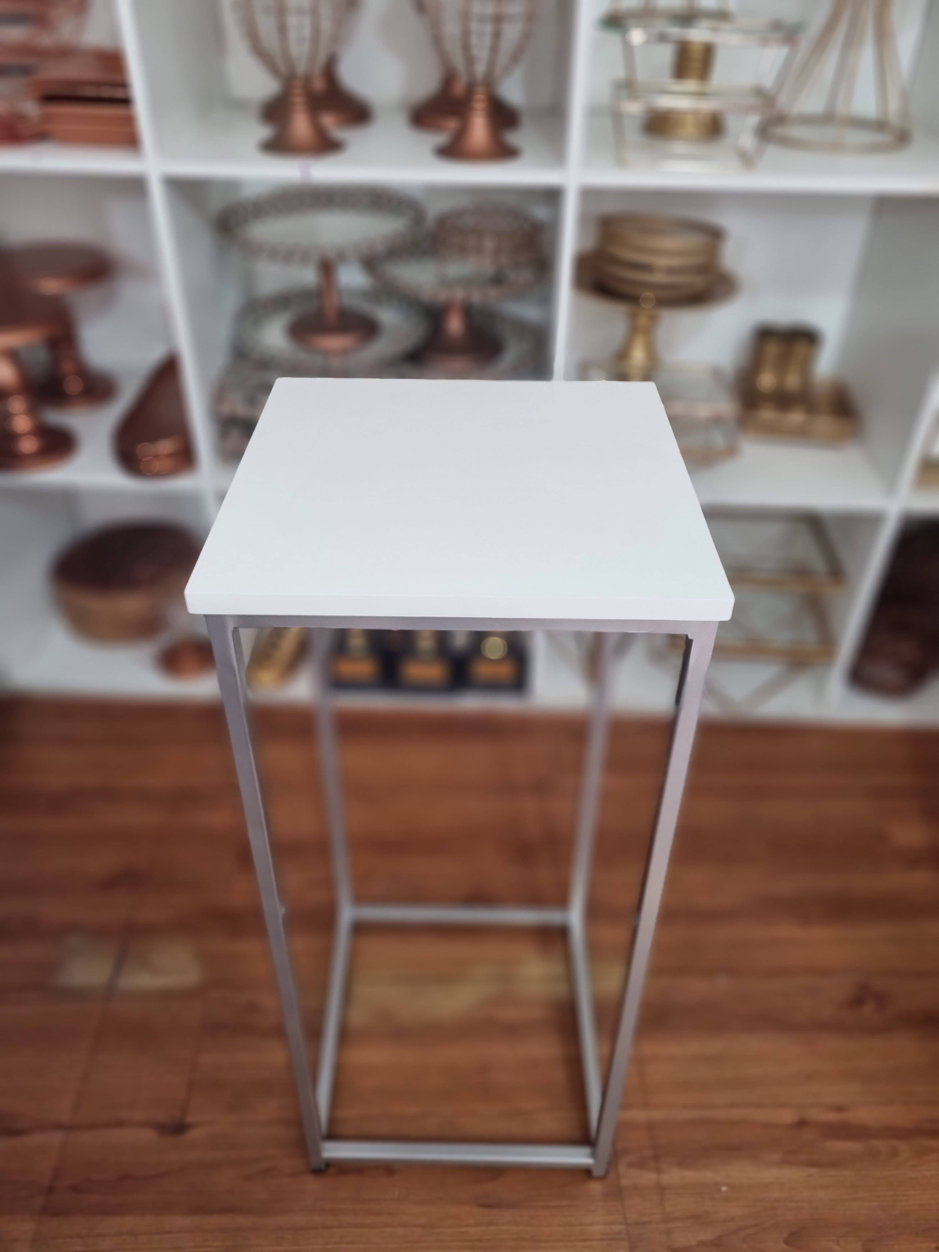 Mesa de ferro quadrada Josy Prata c/ tampão branco M