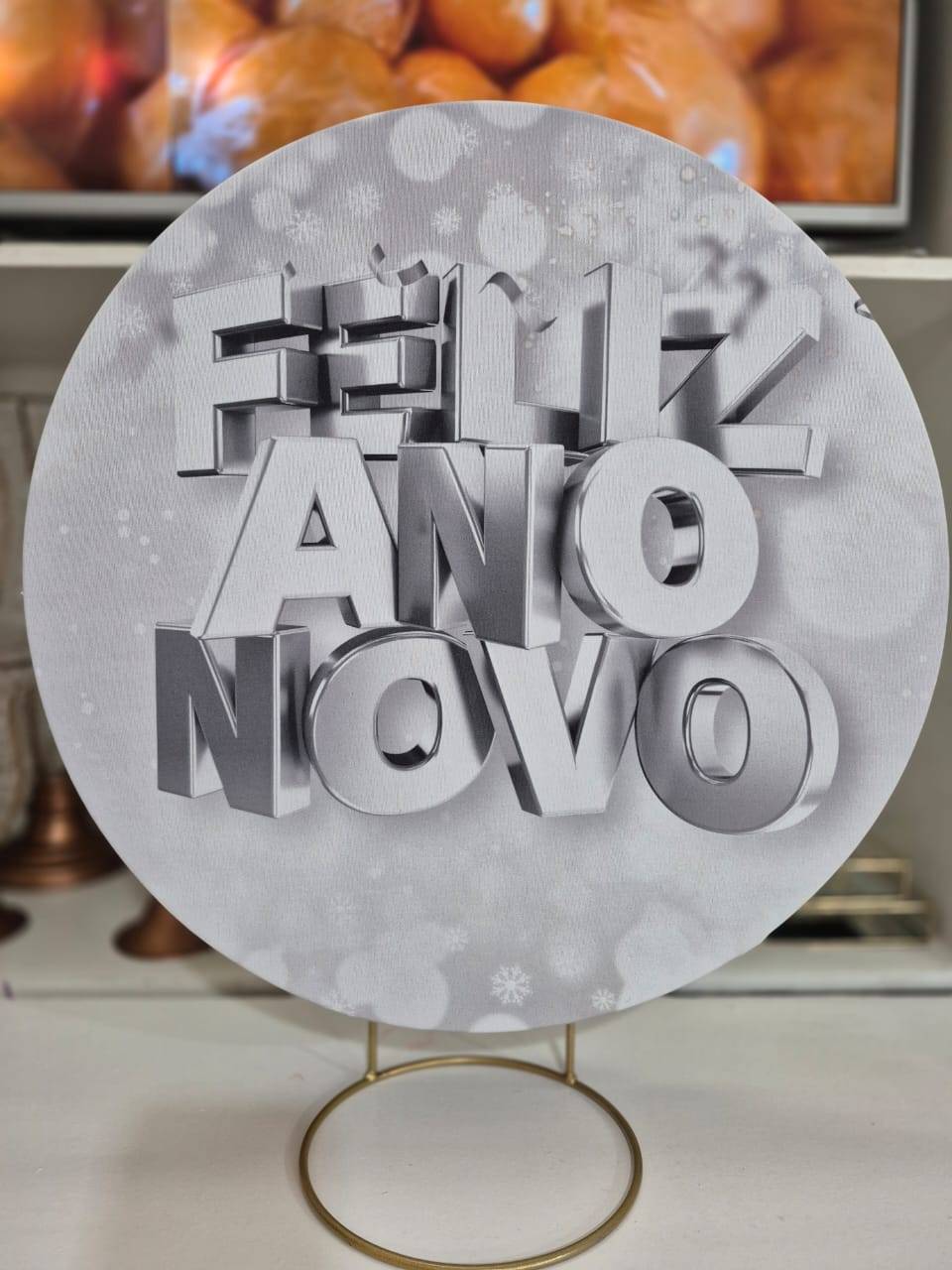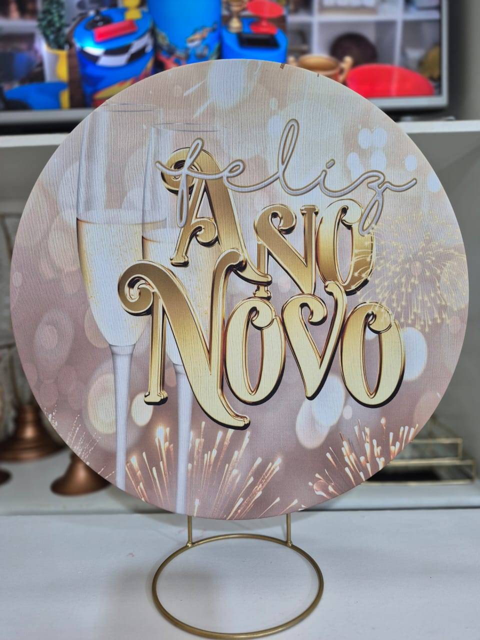 Mini capa painel redondo 50x50 Feliz Ano novo dourado