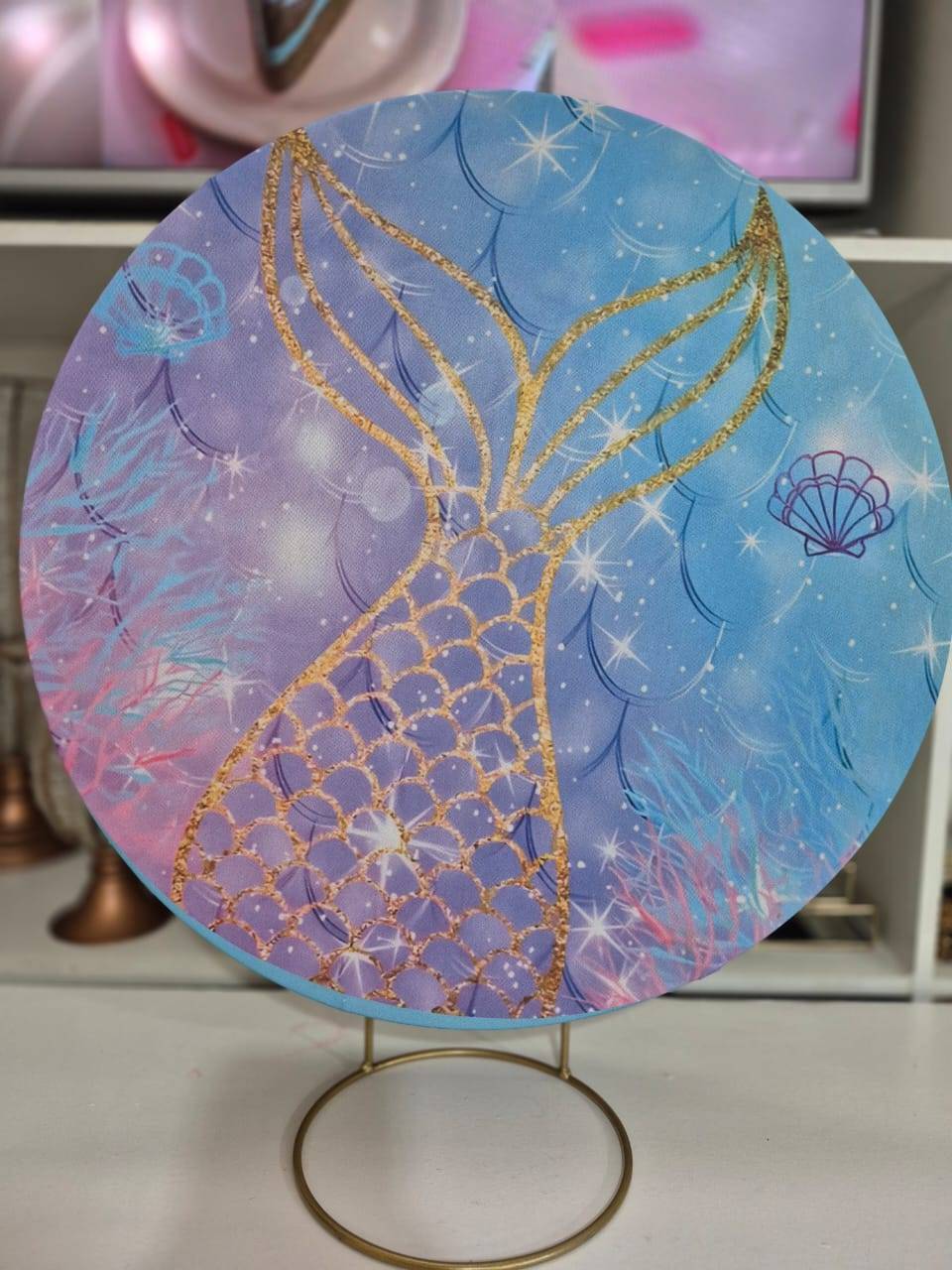 Mini capa painel redondo 50x50 Cauda Sereia dourada