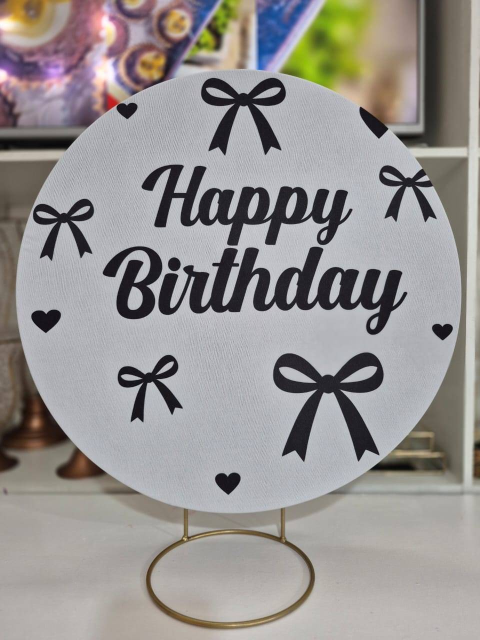 Mini capa painel redondo 50x50 happy birthday Laços Pr
